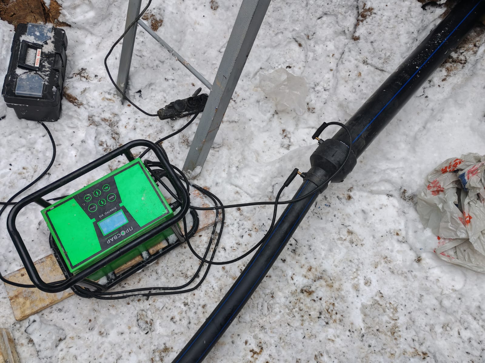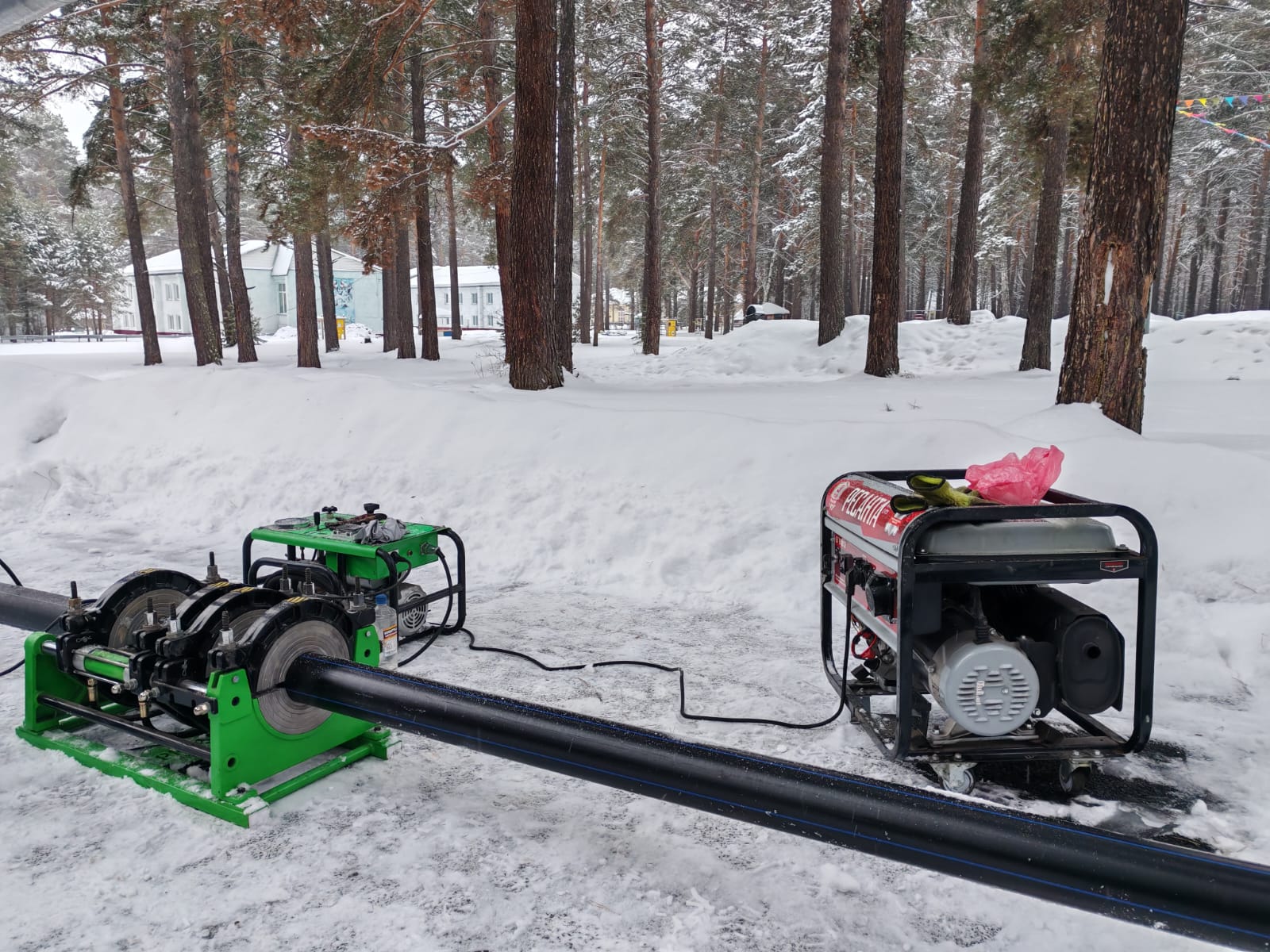 Первый день ребята выполнили пилотное сложное бурение. Второй день сварили трубу 160мм длиной 65 метров и приступили к затяжка. На следующий затянули кабель. Все работы были выполнены очень быстро и оперативно.